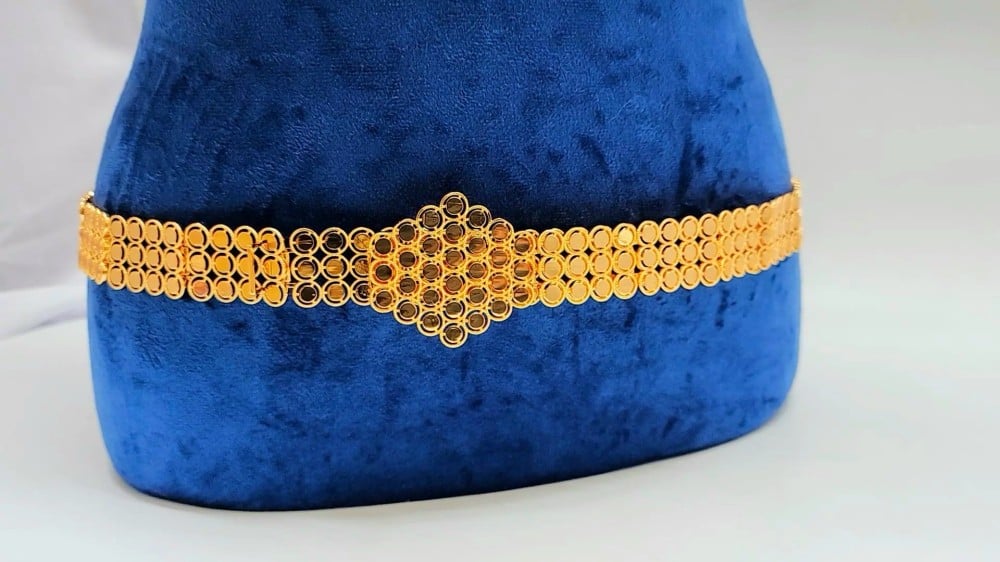 - حزام مطلي بالذهب يتميز بجودته العالية وتصميمه الراقي. تم تصميمه بعناية من قبل فريق مختص مما يضمن لك الحصول على قطعة مجوهرات عالية الجودة والأناقة.