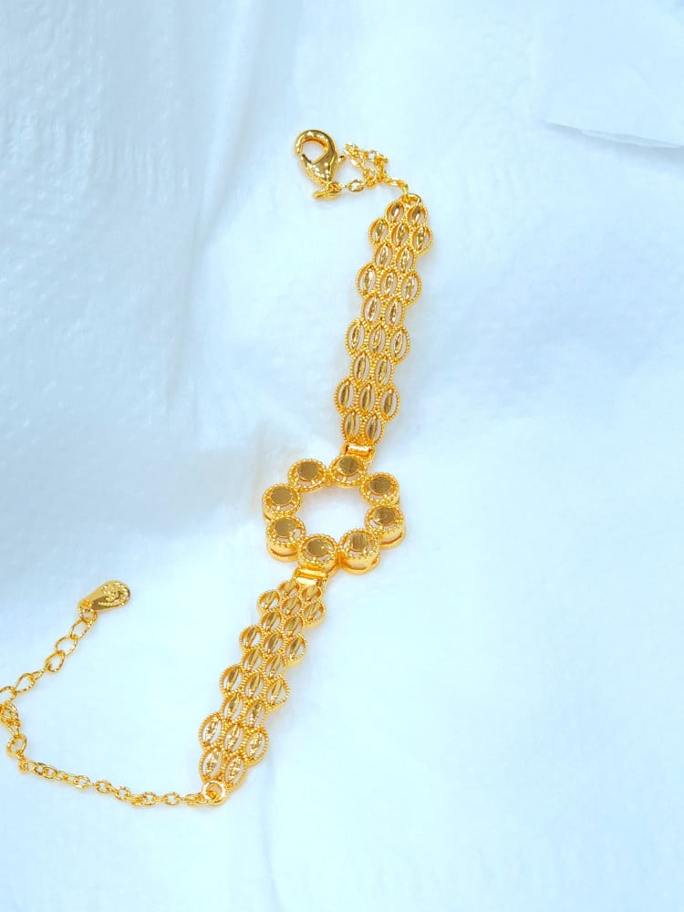 . ، يتميز السواره بتصميمه الراقي والذي يتدلى على يدك بكل تناغم وجاذبيه ، اللامعه بأشكال أنيقه مترابطه معا ، بتصميم جذاب يمتزج بأناقه مع طلتك ، نسقي الطقم مع اطلالتك في مناسباتك ويومك المهمه لطله جذابه وخاطفه للانظار
