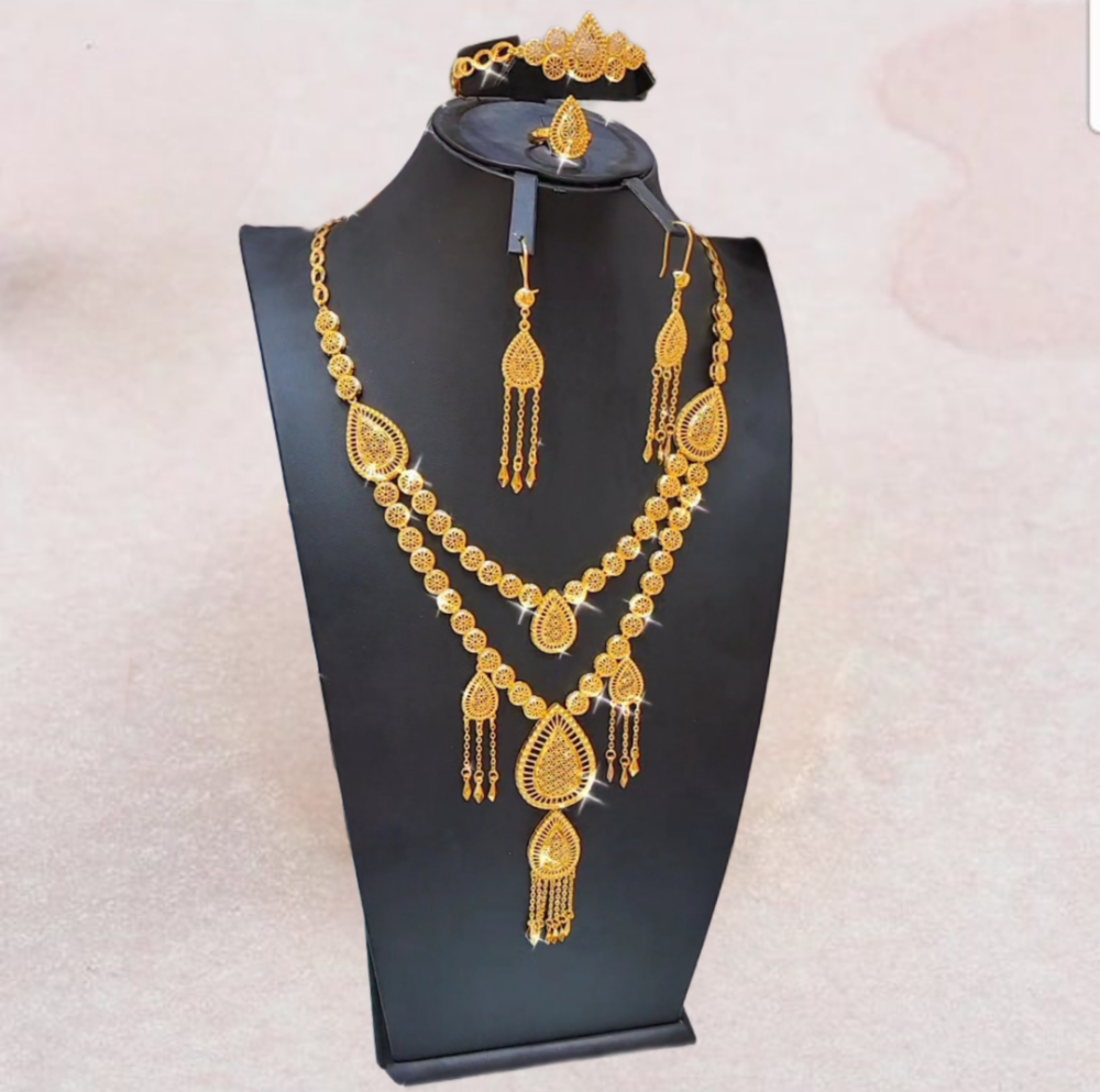 طقم نسائي يتميز بجودة حيث انه مطلي بماء الذهب ليكتسب اللمعان والبيريق، تم تصميمه من فريق مختص بتمصميم الذهب ليضيف لك الاناقه بتصميمه الراقي والذي يتدلى على عنقك بكل تناغم وجاذبيه ، اللامعه بأشكال أنيقه مترابطه معا ، بتصميم جذاب يمتزج بأناقه مع طلتك ، نسقي الطقم مع اطلالتك في مناسباتك المهمه لطله جذابه وخاطفه للانظار●امن على البشره لا يسبب حساسيه اطلاقا راح يضيف لأطلالتك ولجمالك 🤍