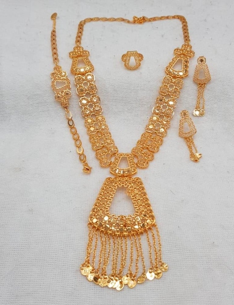 طقم نسائي مطلي يتميز بجودة حيث انه مطلي بماء الذهب ليكتسب اللمعان والبيريق، تم تصميمه من فريق مختص بتمصميم الذهب ليضيف لك الاناقه بتصميمه الراقي والذي يتدلى على عنقك بكل تناغم وجاذبيه ، اللامعه بأشكال أنيقه مترابطه معا ، بتصميم جذاب يمتزج بأناقه مع طلتك ، نسقي الطقم مع اطلالتك في مناسباتك المهمه لطله جذابه وخاطفه للانظار●امن على البشره لا يسبب حساسيه اطلاقا راح يضيف لأطلالتك ولجمالك 🤍